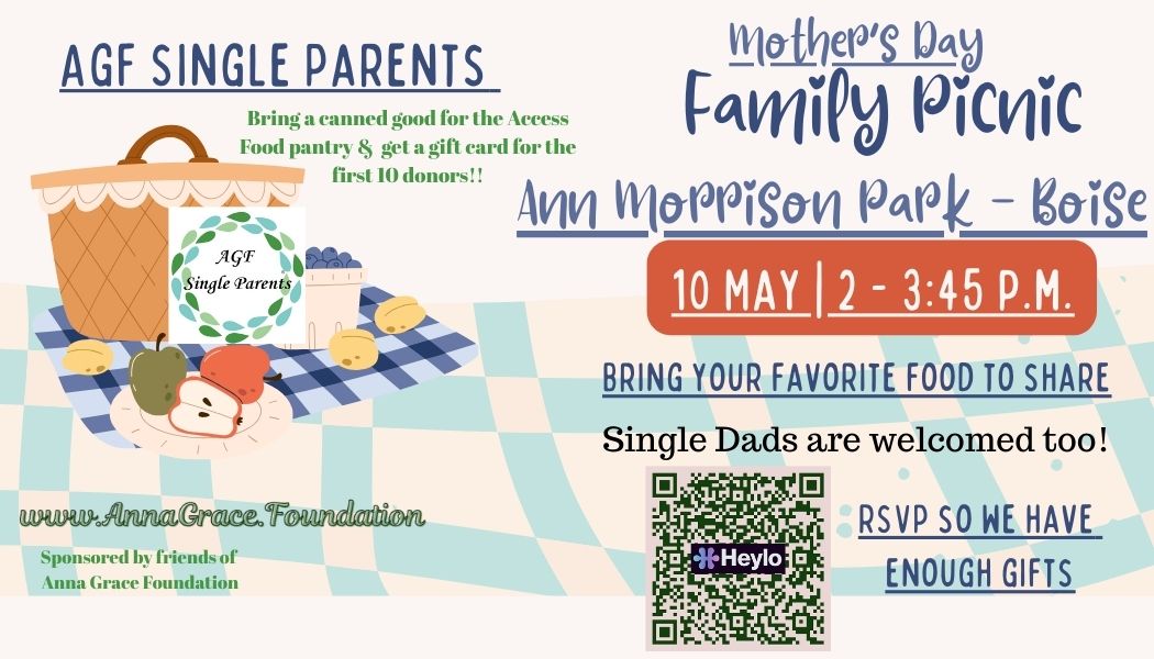 AGF SINGLE MOTHER'S DAY Picnic and Potluck - All are welcome, single dads, single moms and your children!